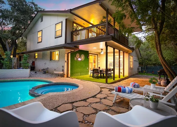 **Welcome to Lancashire Villa San Antonio**, an exquisite retreat that blends luxury and comfort, situated just 16 km from the historic Southern Pacific Passenger Station and 15 km from San Antonio International Airport, making it an ideal choice for both leisure and business travelers. This charming villa offers a serene escape, enveloped in lush landscapes and sophisticated design, creating a perfect atmosphere for relaxation.